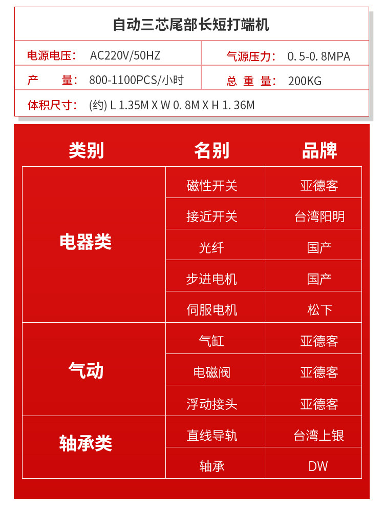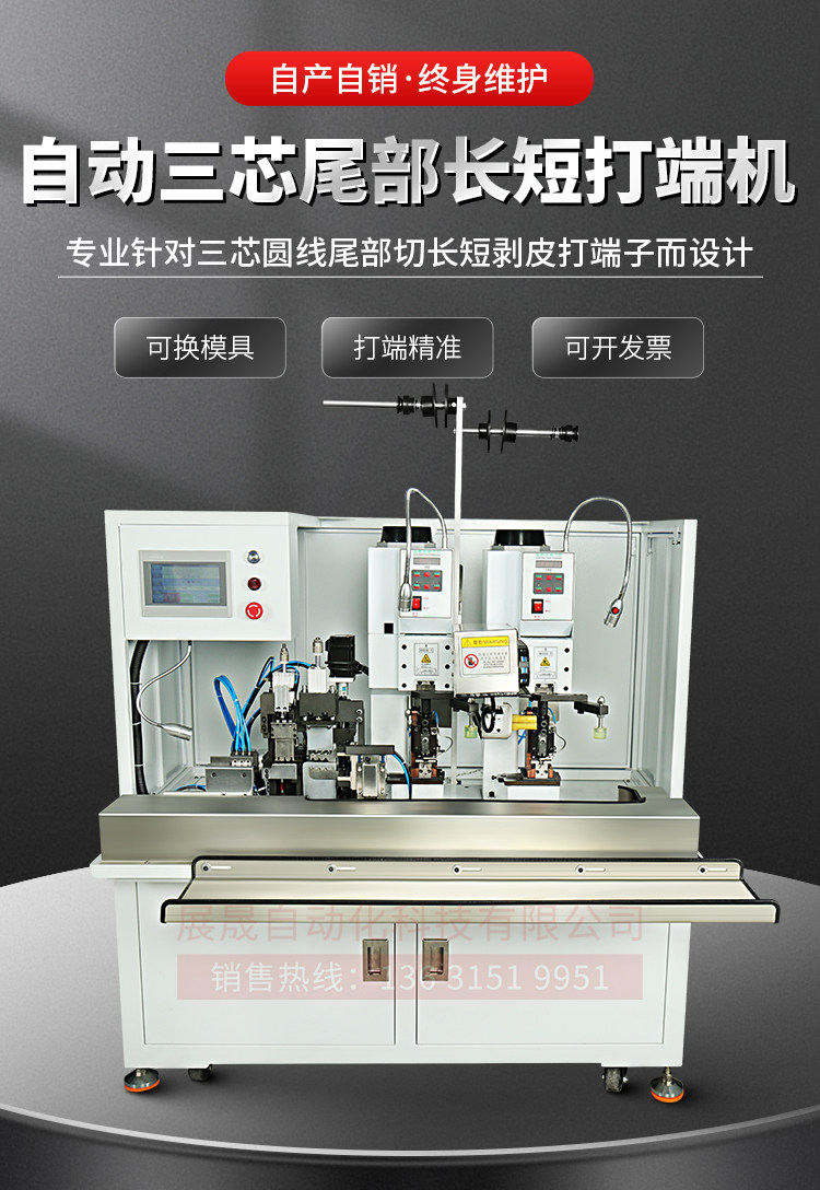 自动三芯线尾部长短打端机