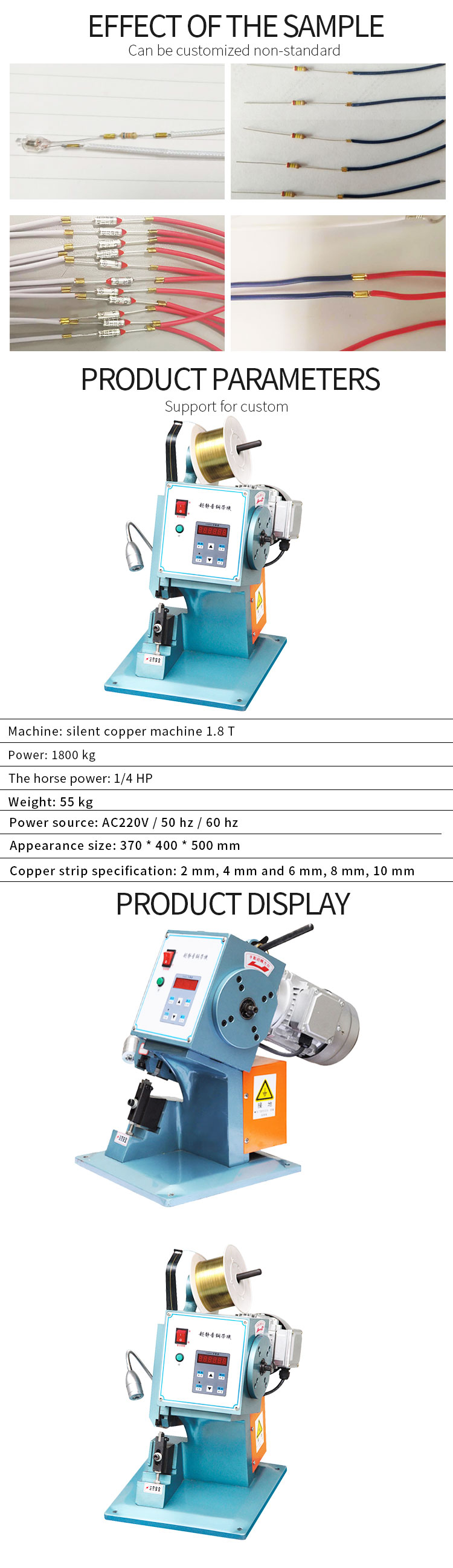3. the copper strip terminals are highly resistant to tensile strength and stable quality after special riveting and riveting. It is equipped with straight and curved touch seats for different products. Humanized design, simple operation, no training, can be operated at any time.